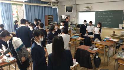 6年生で外国語の公開授業がありました。基本表現の What do you want to be? で、なりたい職業とその理由を言って、将来の夢を発表する学習です。インタビューでやってみたい職業を伝え合うなど、子どもたちは活発に言語活動に取り組んでいました。