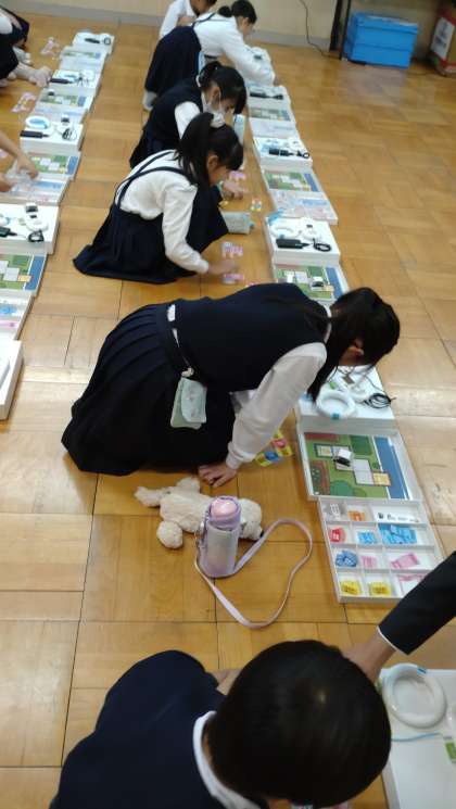子どもたちは、車をコースのプログラミングをしてゴールに到着させる課題をとても熱心に取り組んでいます。