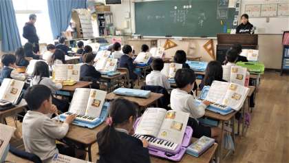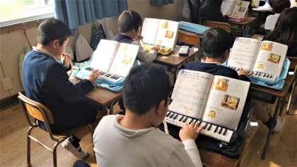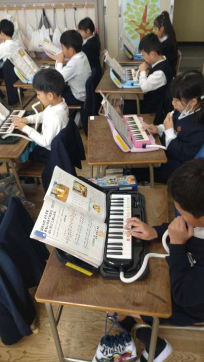 2年生が音楽の時間に楽曲「小ぎつね」を鍵盤ハーモニカで合奏をしました。楽曲の気分を感じ取りながら、想像豊かに思いをもって表現しています。