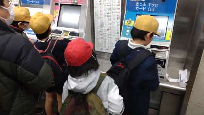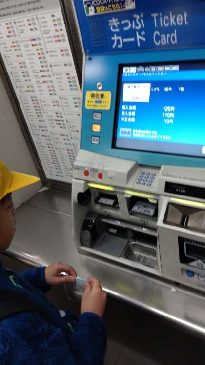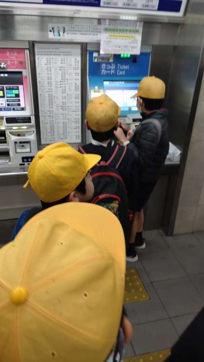 駅に着いたら自立活動として切符を購入しました。前もって学習した購入のマニュアルに沿って、子どもたちは自分でしっかりと切符の購入をしていました。