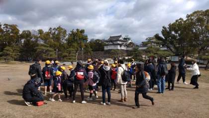 図工展見学の後、大阪城公園に行きました。右側に大阪城が見えてきました。
