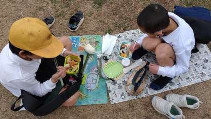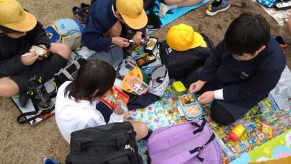 お弁当タイムです。みんなで、おいしくお弁当をいただきました。