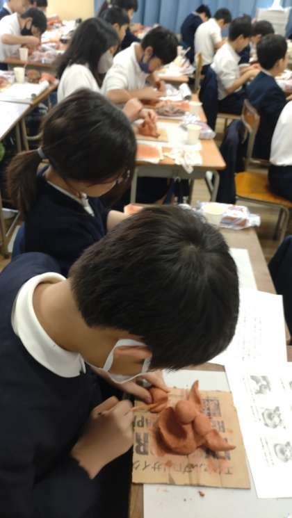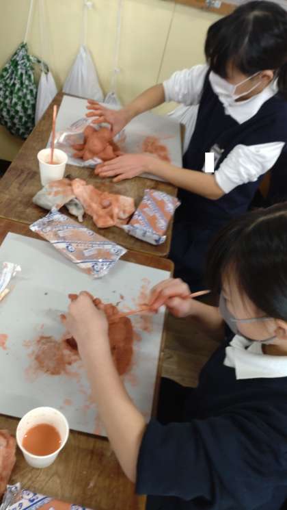 5年生が図画工作で立体作品づくりに取り組んでいます。粘土で、ひとづつのパーツを丁寧に作っています。
