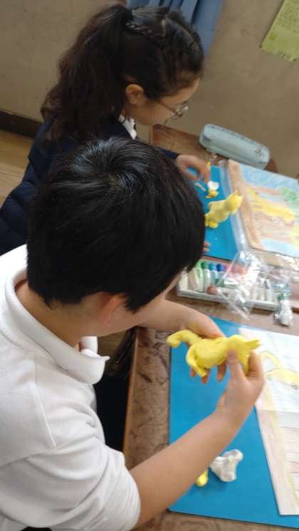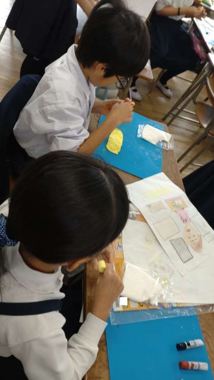それぞれがイメージした絵をもとに、想像をふくらませなから粘土で造形しています。