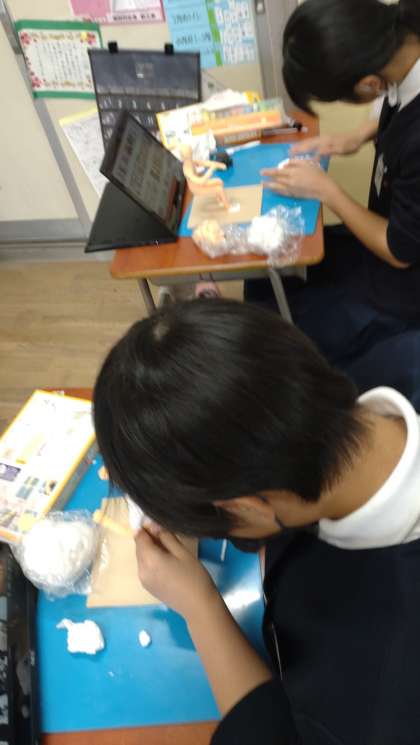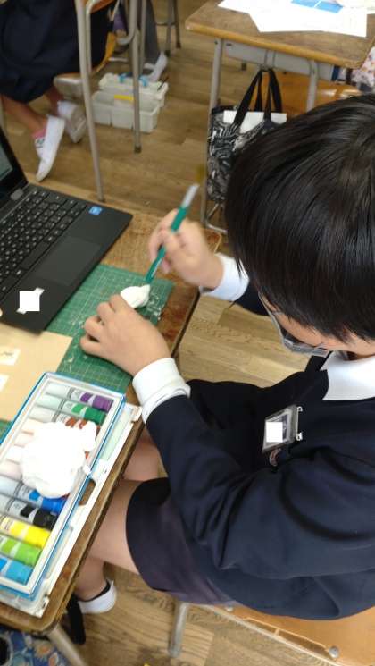 写真は、6年生の立体作品づくりの様子です。丁寧に作品づくりに取り組んでいます。