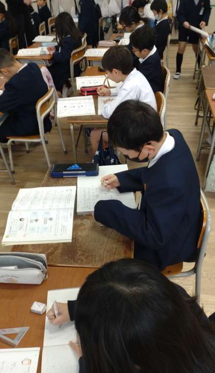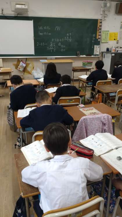 3年生が、算数で小数の学習に取り組んでいます。(整数)±(小数)の筆算、(小数)±(小数)で空位のある筆算などの学びのまとめをしています。