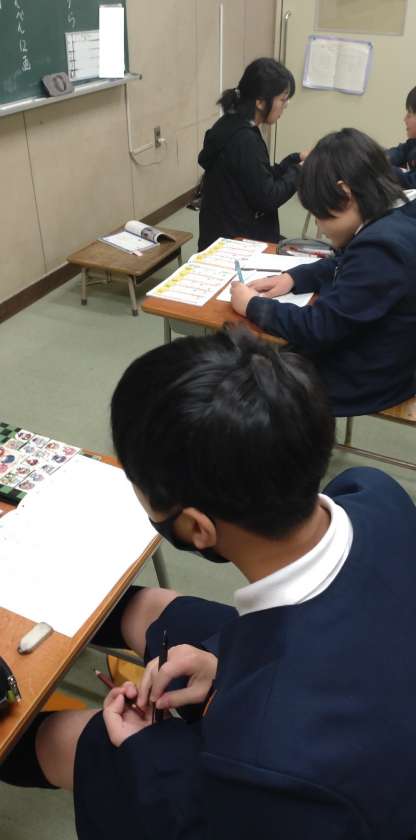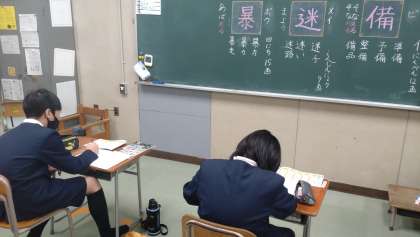 なかよし学級の5年生が漢字の学習に取り組んでいます。新出漢字の「備」「迷」「暴について読み方や熟語などを学んでいます。