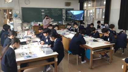 6年生の理科で「てこのはたらき」の学習をしました。この時間は学習のまとめに取り組んでいます。てこのしくみを利用した道具や身近な道具で救われた命について学んでいます。
