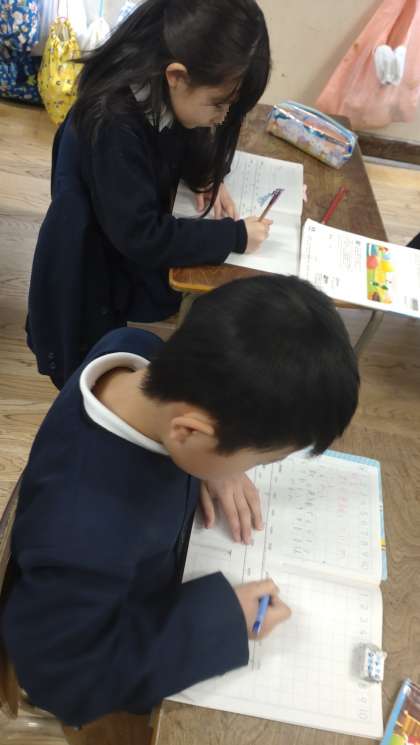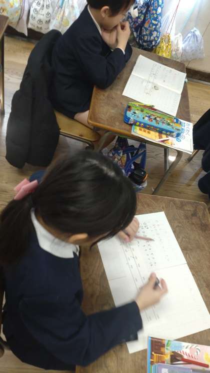 写真は、数直線の目盛りの大きさに着目して、10000 までの数の系列や順序、大小関係について学んでいる子どもたちの様子です。