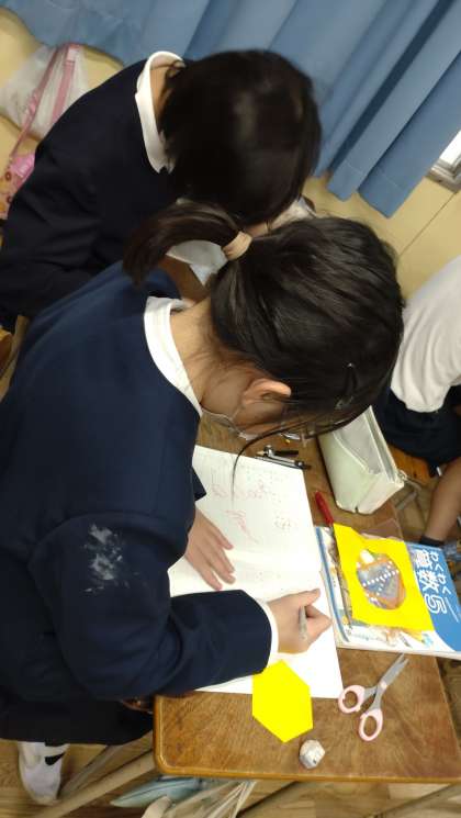5年生が図形の学習に取り組んでいます。正多角形の意味と性質について学んでいます。