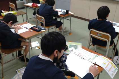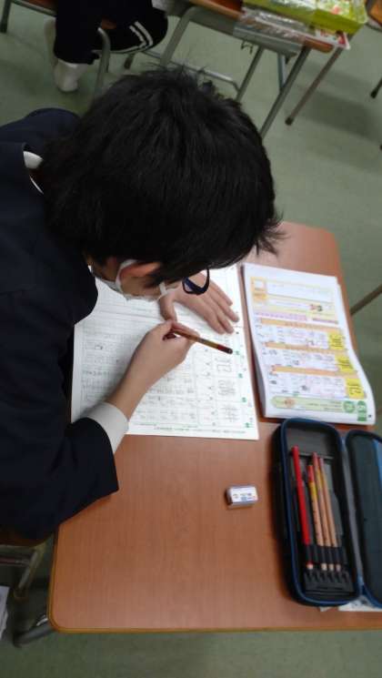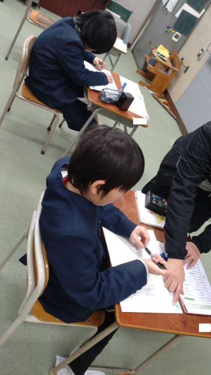 なかよし学級の5年生が、漢字の学習に取り組んでいます。新出漢字をドリルやノートを使って読みや熟語などを熱心に書いています。