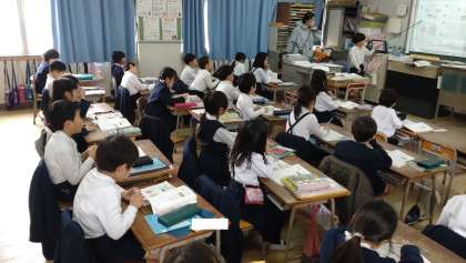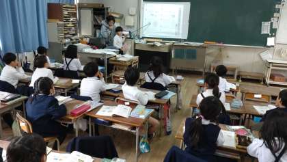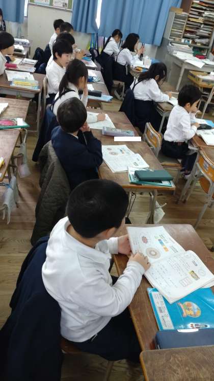 1年生の算数で、これまでの学習の復習に取り組んでいます。答え合わせでは、友だちの発表聞いて理解を深めています。