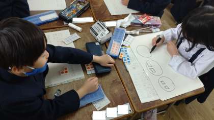 ブロックや絵、図を使って課題を解決しました。グループでの話し合いも活発に行われていました。