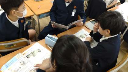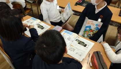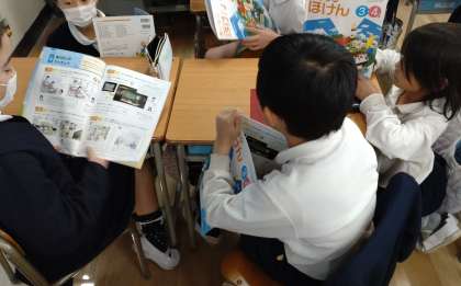 目の健康や空気の入れかえについて、グループで自分の考えを伝え合っています。