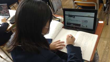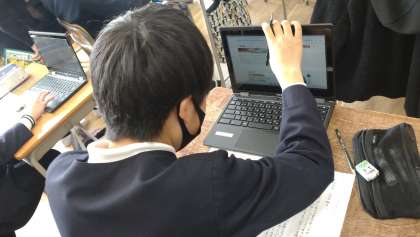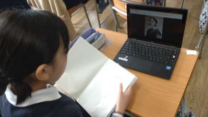 一人一台端末PCを活用して、さまざまなプロフェッショナルな人物について調べ、自分の考えをまとめています。