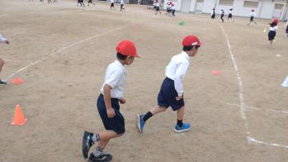 同じ速度で無理のないように持久走に取り組んでいます。