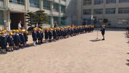 入場後に、校長先生のお話や6年生の代表児童のことば、1年生の「よろしくお願いします」のあいさつがありました。これから楽しく学校生活をすごしてほしいと思います。