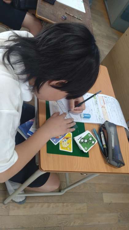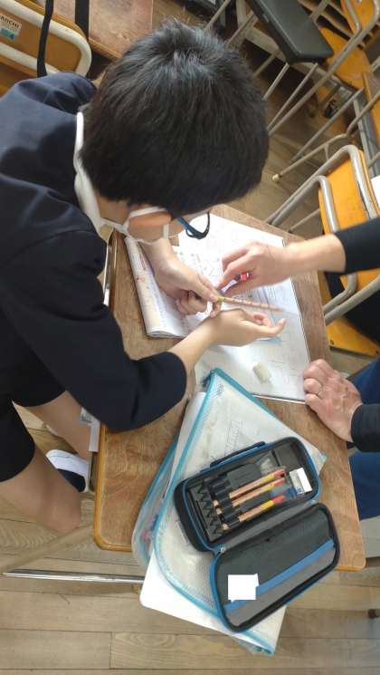 なかよし学級の6年生が算数の学習に取り組んでいます。「線対称」「点対称」などについて学んでいます。