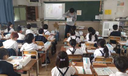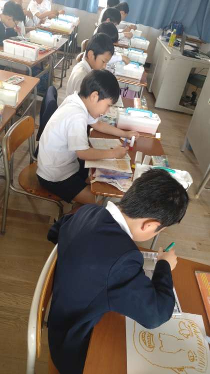 3年生が図工で水彩絵の具を使って描画しています。筆やパレットの使い方などの基本をしっかりと学習しています。