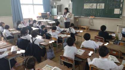 1年生が国語で「なんていうのかな」の学習に取り組んでいます。人と関わるときに大切な言葉を知り、使うことができるように学んでいます。この時間は、先生や友達、家族などの周りの人と話すときに使っていた挨拶の言葉を発表し、教科書のいろいろな場面の絵を見て必要な言葉を考え、これから学校生活で使いたい言葉を考えています。