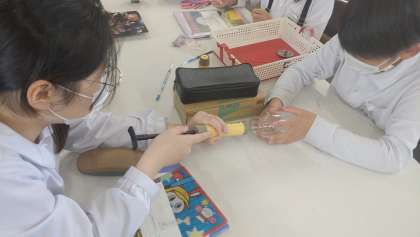 6年生が理科で実験に取り組んでいます。「ものが燃えるときの空気の変化」の学習です。