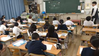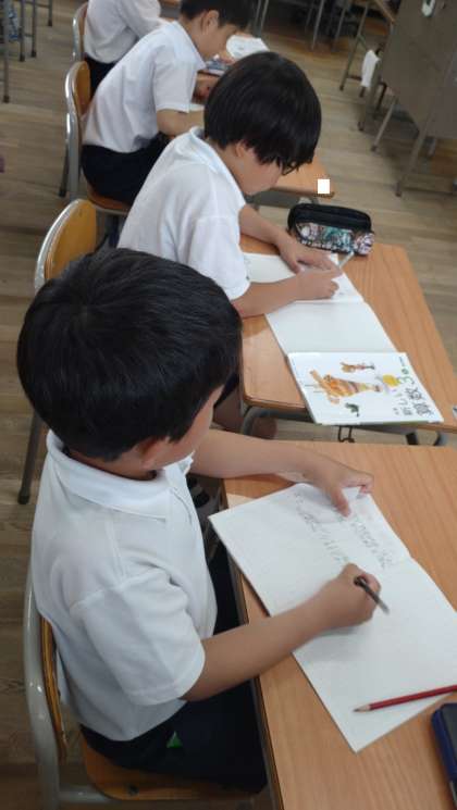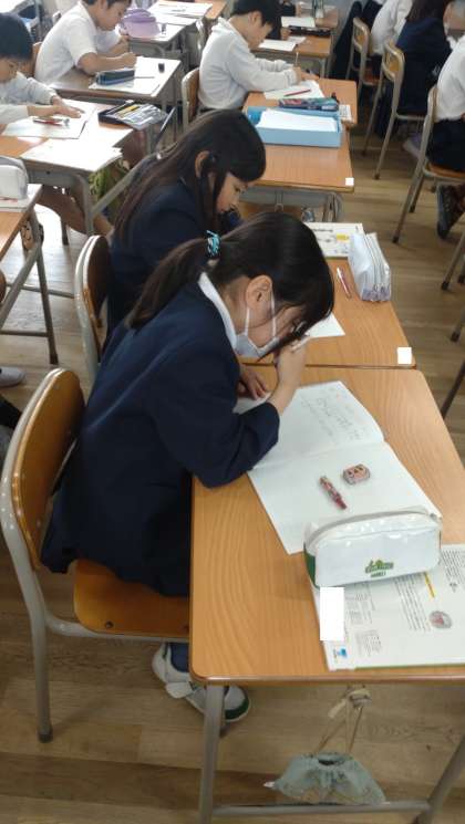 3年生が算数で「時こくと時間のもとめ方」の学習のまとめをしました。基本的な問題を課題解決しています。
