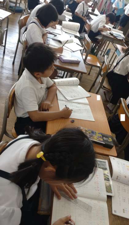 2年生が算数で「ひき算のひっ算」の学習に取り組んでいます。くり下がりのある2位数-2位数のひっ算の仕方を考え課題解決する学習です。