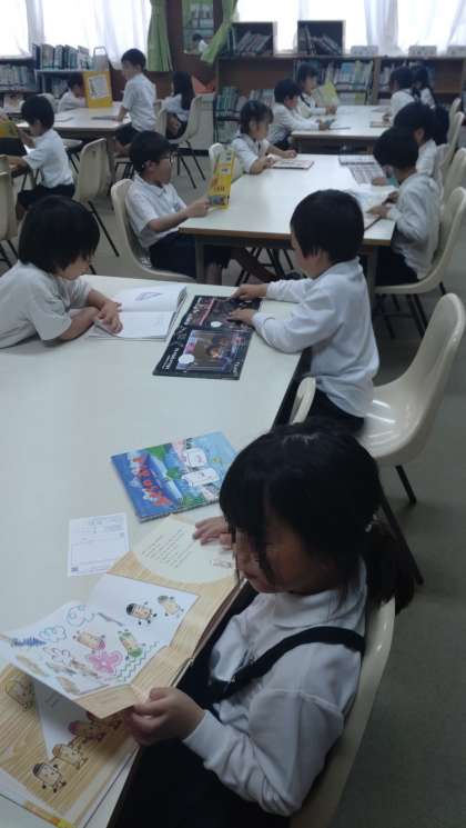 今日は学校司書の方が来校して、子どもたちの本の貸し出しなどの読書活動の支援をしていただきました。子どもたちは、とても熱心に自分のお気に入りの本を読んでいます。