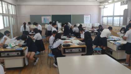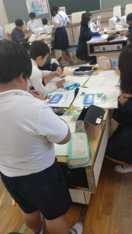 6年生が家庭科の時間に、「トートバッグづくり」に取り組んでいます。