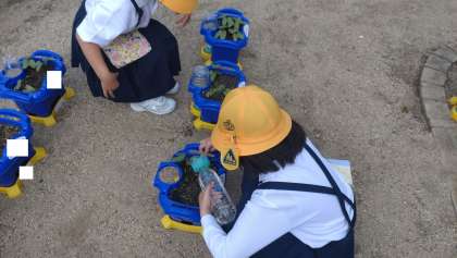 朝、学習園を見ると1年生の子どもたちがあさがおの水やりをしていました。昨日もご紹介しましたが、日ごろから子どもたちは、とても熱心に、おさがおのお世話をしています。