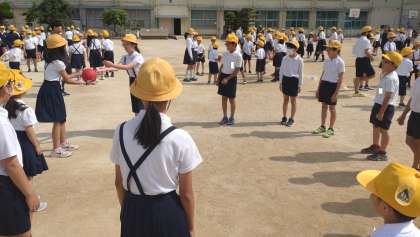 ゲームは、ボールを投げ渡すゲームで、リレーのように次々と渡していき、合図があったときに持っているとアウトというルールです。