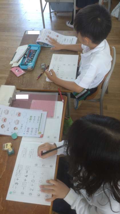 1年生が算数で「0のたし算」の学習をしました。0 を含む加法の計算の意味を学んでいます。