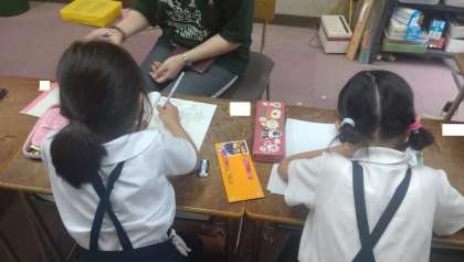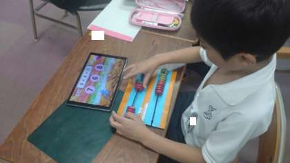 なかよし学級の子どもたちが各学年で算数の課題に取り組んでいます。たし算や容積の求め方などの学習をしています。タブレットを使って課題解決している児童もいます。