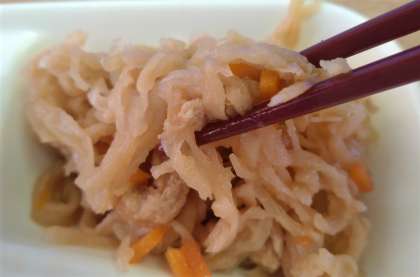 切干しだいこんは、細く切っただいこんを干して作ります。