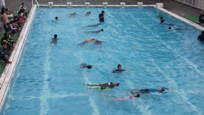 6限目に6年生が「着衣泳」の学習を行いました。「着衣泳」は、泳ぐことではなく、「浮くこと」の学習です。子どもたちは、水難事故に遭いそうになったときに命を守るために落ち着いた対応の仕方を学びました。