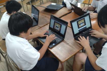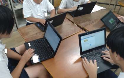 なかよし学級で一人一台端末を活用してローマ字の学習に取り組んでいます。子どもたちは、ローマ字練習用のアプリケーションで熱心にローマ字を学んでいます。