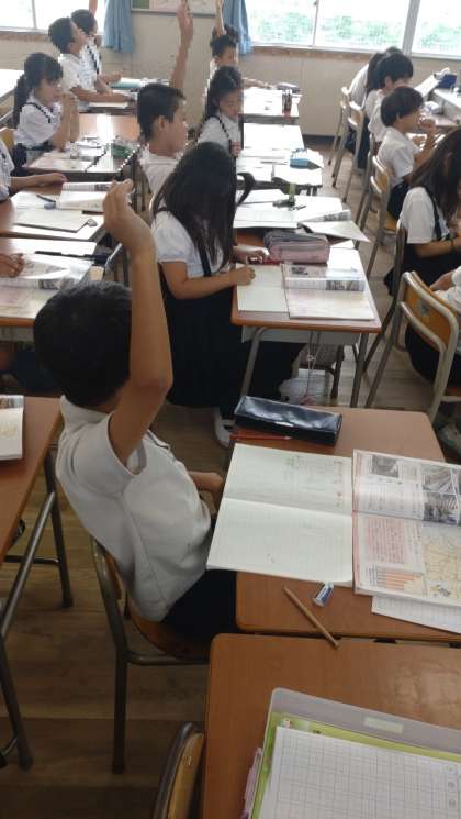 3年生の社会で大阪の交通について調べ考えました。「どうして梅田や天王寺の乗降客が多いのだろうか?」の先生からの問いに子どもたちはその理由を熱心に考えていました。社会科は「調べて考える」教科です。子どもたちには社会事象を考える力を高めてほしいと思います。