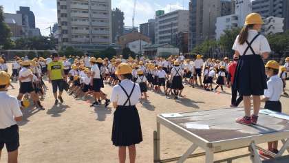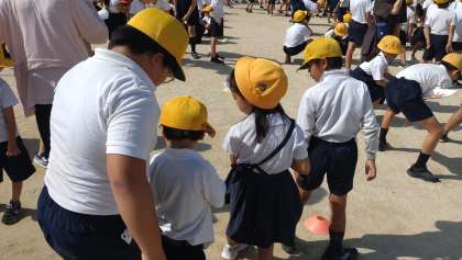 今朝、児童集会がありました。たてわり班でボールを送るゲームに取り組みました。集会委員会の司会・進行で、たてわり班が協力してゲームは行われました。