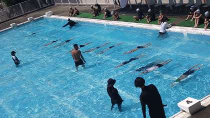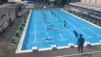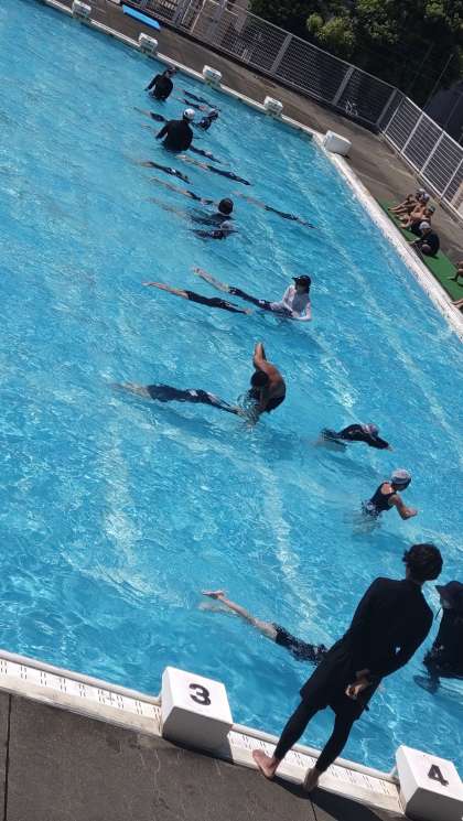 写真は、今日、夏休みのプール開放に参加している中学年の子どもたちの様子です。夏休みのプール・図書館開放は、26日(金)まで行われます。