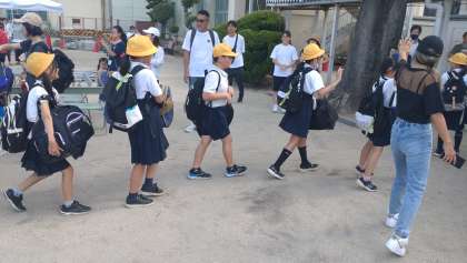 保護者の方にもお見送りしていただき、元気に出発しました。