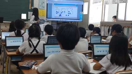 昨日の6限目に教育委員会から講師の先生に来ていただき3年生の研究授業がありました。算数の単元「あまりのあるわり算」の学習で、タブレットPC等も活用して、あまりのあるわり算の計算の仕方を学びました。子どもたちは、とても集中して学習に取り組んでいました。発表も積極的でした。