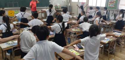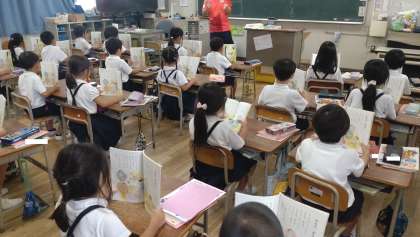 1年生がこの時間では、詩の学習に取り組んでいます。語のまとまりに気をつけて、リズムよく音読したり、動作化をしたりして工夫して音読しています。