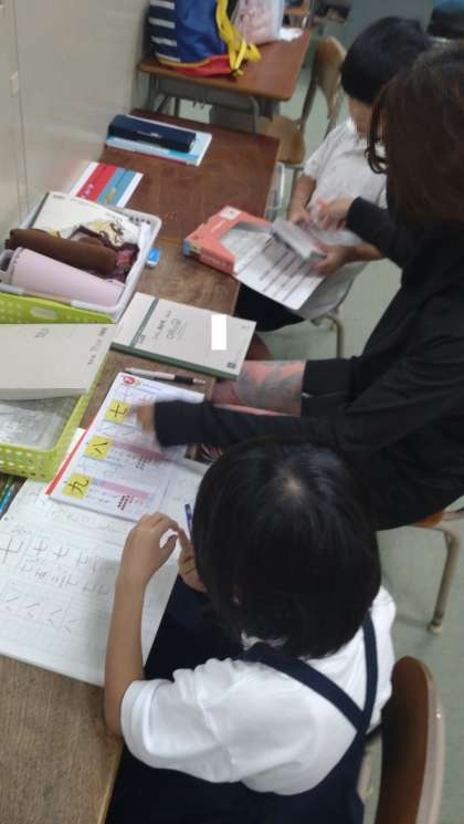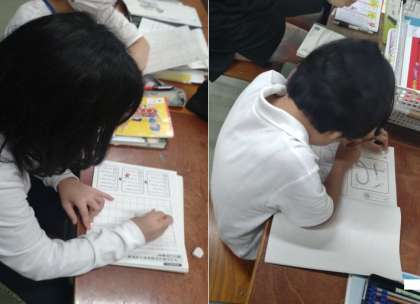 なかよし学級の子どもたちが、それぞれの課題に向けて学習しています。国語の漢字や文章の書き取り、算数の学習など熱心に取り組んでいます。