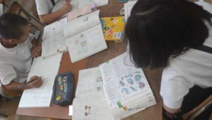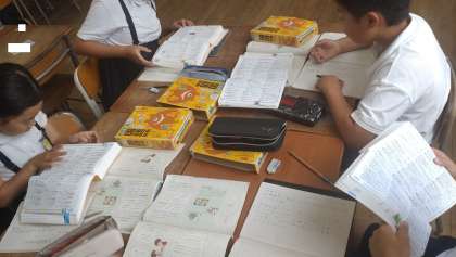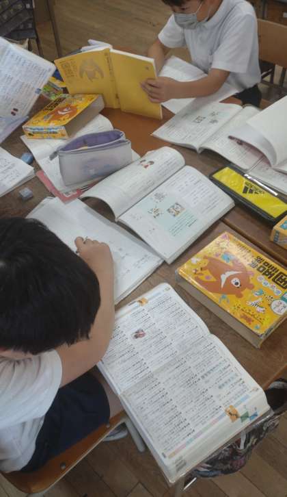 子どもたちは、とても集中して国語辞典を使って調べています。