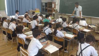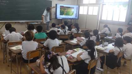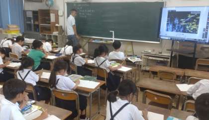 3年生が理科の学習に取り組んでいます。この時間は、昆虫は、それぞれ体の色、形、大きさに特徴があり、それらが生活場所や食べ物に関係していることを学んでいます。