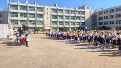 今朝、児童集会がありました。高学年がリードして、円になってしりとりゲームで楽しみました。