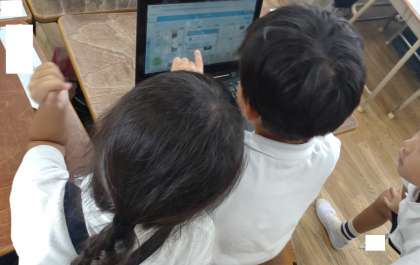授業では、具体物やタブレットPCなども活用して、子どもたちは学習に熱心に取り組んでいました。発表もたいへん活発でした。