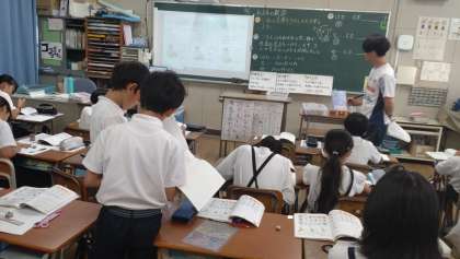 4年生が、学年を3分割して算数の学習に取り組んでいます。概数について理解し、概数を用いたり四捨五入や四則計算の結果の見積もりをしたりすることができるように学んでいます。