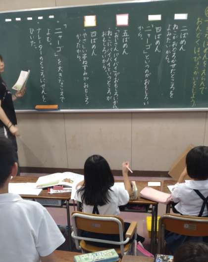 なかよし学級で国語の学習に取り組んでいます。物語文を場面ごとに読み取っています。積極的に考えを発表しています。