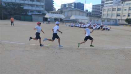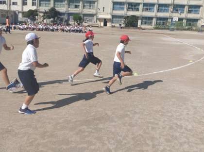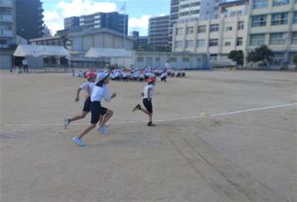 いよいよ20日の運動会も近づいてきました。天候不順で、運動場での練習も少ない中、子どもたちは元気に頑張っています。写真は、4年生の個人走の様子です。一生懸命走っています。